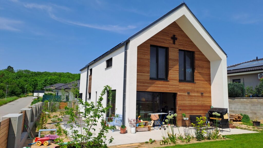Pasivní rodinný dům Labuty Rok výstavby 2022 Dispozice 5+kk Užitná plocha 115,83 Měrná potřeba tepla na vytápění 18,7 kWh/m2 Průměrný součinitel prostupu tepla 0,16 W/m2K Lokalita Česká republika Založení na základových pasech